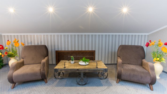 Спокойные цвета интерьера ,благородная обстановка ,подходит для семейного отдыха.