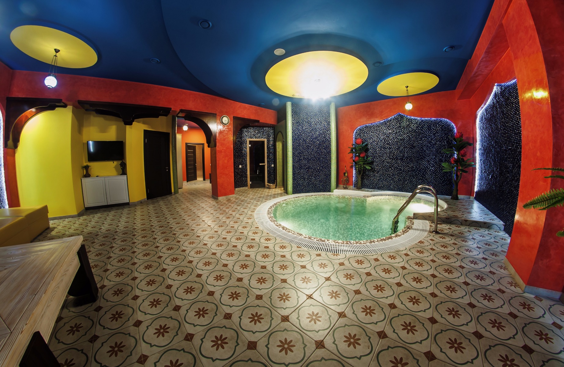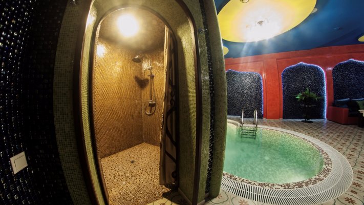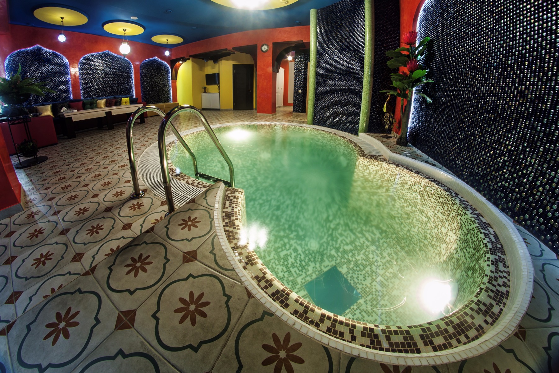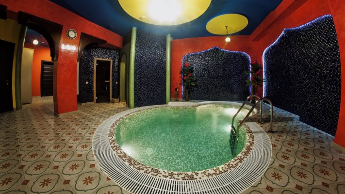 - бассейн 4*3, глубина 1,5 метра ( с постоянной фильтрацией воды и подсветкой)